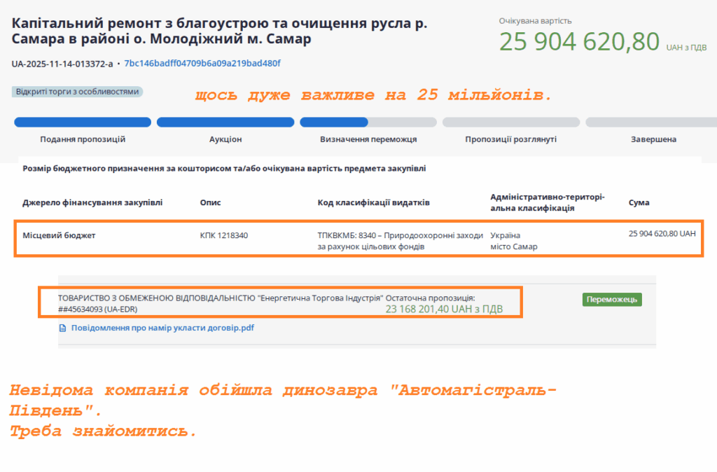Як бачите, одним нехитрим рухом, закупівля на розчищення річки перетворюється…на розчищення місцевих коштів платників податків Самара…