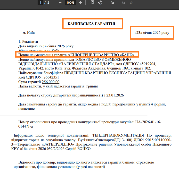 З усіх документів може зацікавити лише банківська гарантія, де не вказано назви банку.