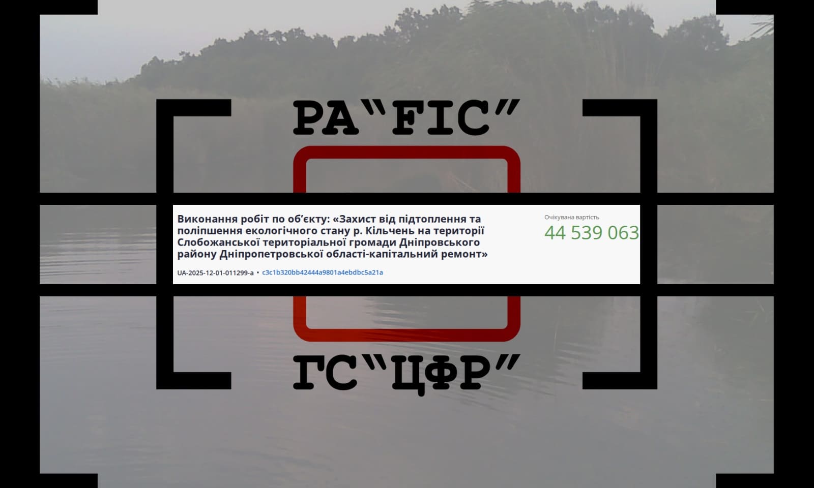 17 грудня РЕГІОНАЛЬНИЙ ОФІС ВОДНИХ РЕСУРСІВ У ДНІПРОПЕТРОВСЬКІЙ ОБЛАСТІ провів закупівлю на виконання робіт по об’єкту: “Захист від підтоплення та поліпшення екологічного стану р. Кільчень на території Слобожанської територіальної громади Дніпровського району Дніпропетровської області-капітальний ремонт”.