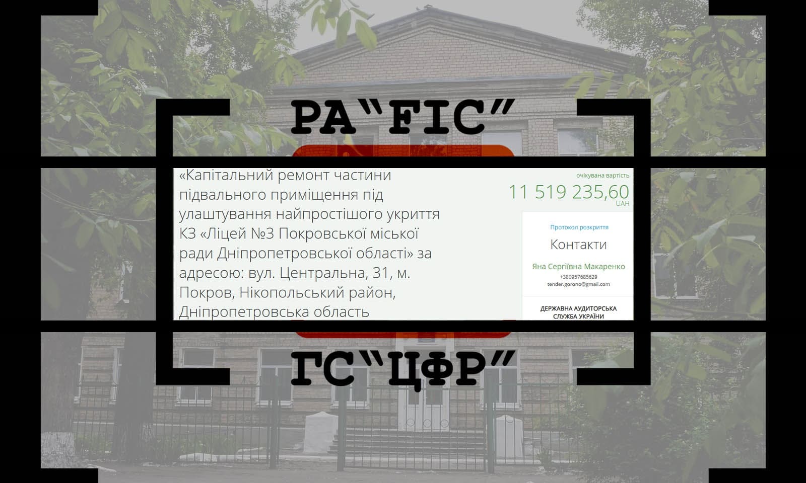 1 червня Управління освіти виконавчого комітету Покровської міської ради провело закупівлю на капітальний ремонт частини підвального приміщення під улаштування найпростішого укриття КЗ “Ліцей №3 Покровської міської ради Дніпропетровської області”. Очікувана вартість закупівлі склала 11 519 235,6 гривні (місцевий бюджет).