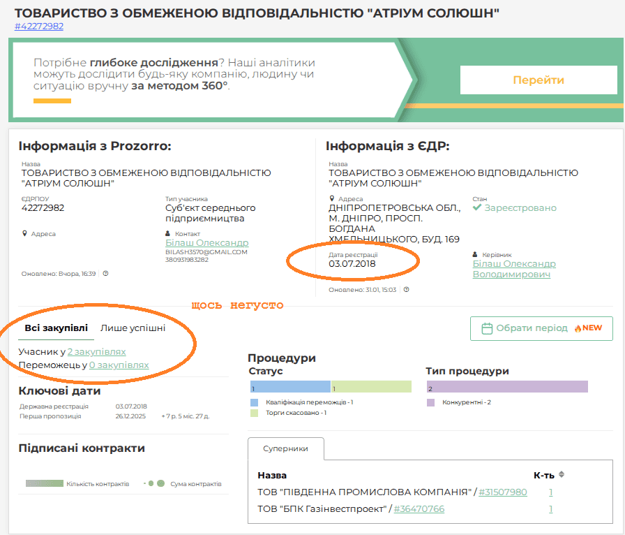 Про ТОВ. Взагалі, не для себе пішов на той тендер, а “для друга”. Існує з 2018 року. На торги не ходив. Має 8 співробітників та 10 000 гривень капіталу.