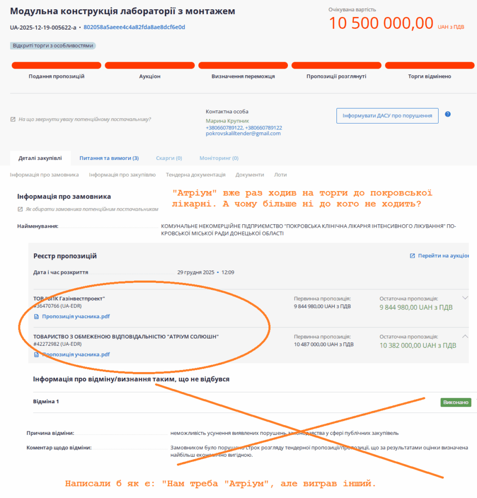 Як ми уже згадували, це другий похід цього учасника на торги. Перший… був також на цю лабораторію в кінці 2025 року. Тоді змагалось два учасники: і в “АТРІУМУ” пропозиція була дорожчою.