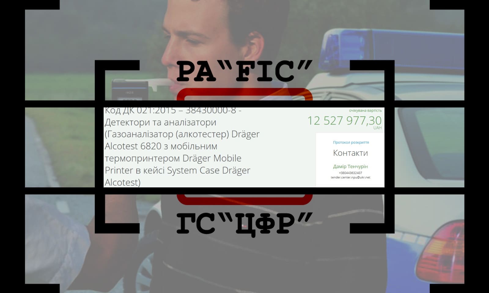 5 вересня Державна установа “Центр обслуговування підрозділів Національної поліції України” провела закупівлю на газоаналізатори (алкотестер) Dräger Alcotest 6820 з мобільним термопринтером Dräger Mobile Printer в кейсі System Case Dräger Alcotest.