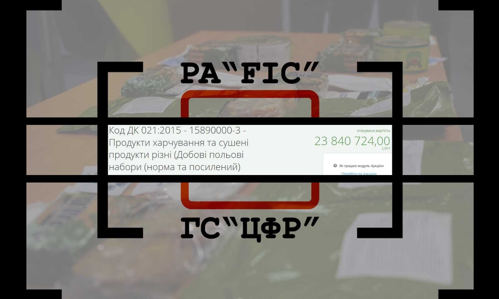 19 червня Державна установа “Центр обслуговування підрозділів Національної поліції України” провела закупівлю на продукти харчування та сушені продукти різні (Добові польові набори (норма та посилений). За ці кошти хочуть отримати 33 600 штук звичайних та 30 000 штук посилених наборів