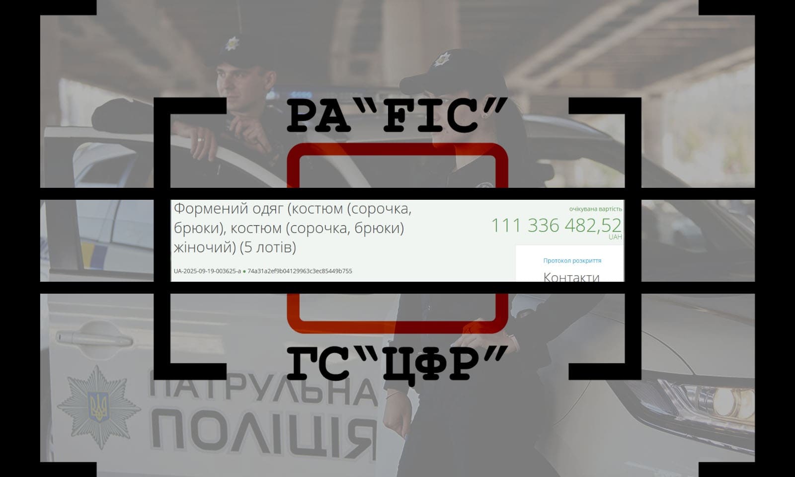 30 вересня Національна поліція України провела закупівлю на формений одяг (костюм (сорочка, брюки), костюм (сорочка, брюки) жіночий) (5 лотів).