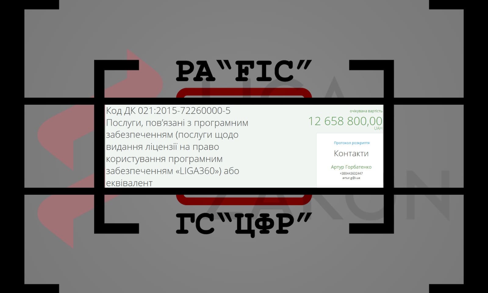 28 липня Державна установа “Центр обслуговування підрозділів Національної поліції України” провела закупівлю на послуги , пов’язані з програмним забезпеченням (послуги щодо видання ліцензії на право користування програмним забезпеченням “LIGA360”) або еквівалент.