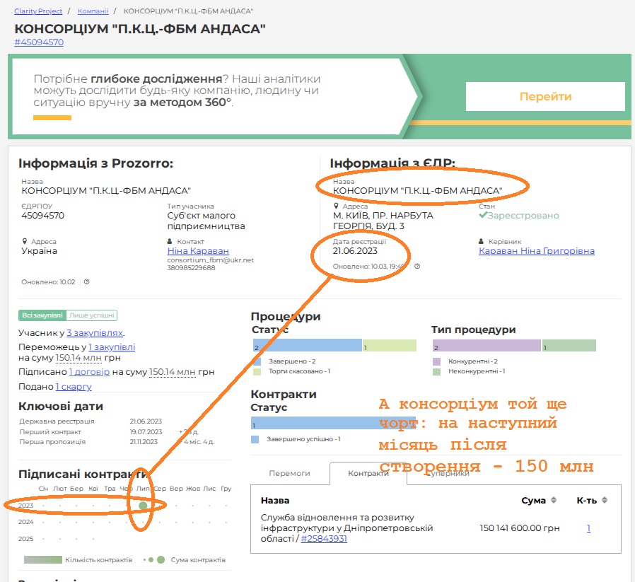 Консорціум теж “ТОП”. В червні 2023 року створили україно-ізраїльський консорціум, який вже в липні, одноразово, виграє 150 мільйонів гривень з яких, фактично, сплатили 93 мільйони. Так от, ніяких проплат ні від Консорціума, ні віз замовника, цей “субпідрядник” не отримував.