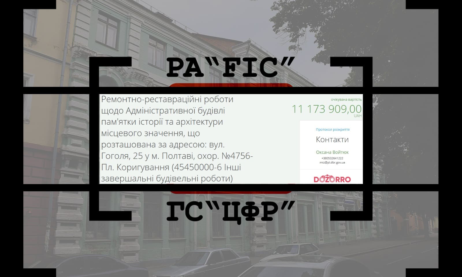 10 вересня ТЕРИТОРІАЛЬНЕ УПРАВЛІННЯ ДЕРЖАВНОГО БЮРО РОЗСЛІДУВАНЬ, РОЗТАШОВАНЕ У МІСТІ ПОЛТАВІ провело закупівлю на ремонтно-реставраційні роботи щодо Адміністративної будівлі пам’ятки історії та архітектури місцевого значення, що розташована за адресою: вул. Гоголя, 25 у м. Полтаві, охор. №4756-Пл. Коригування.
