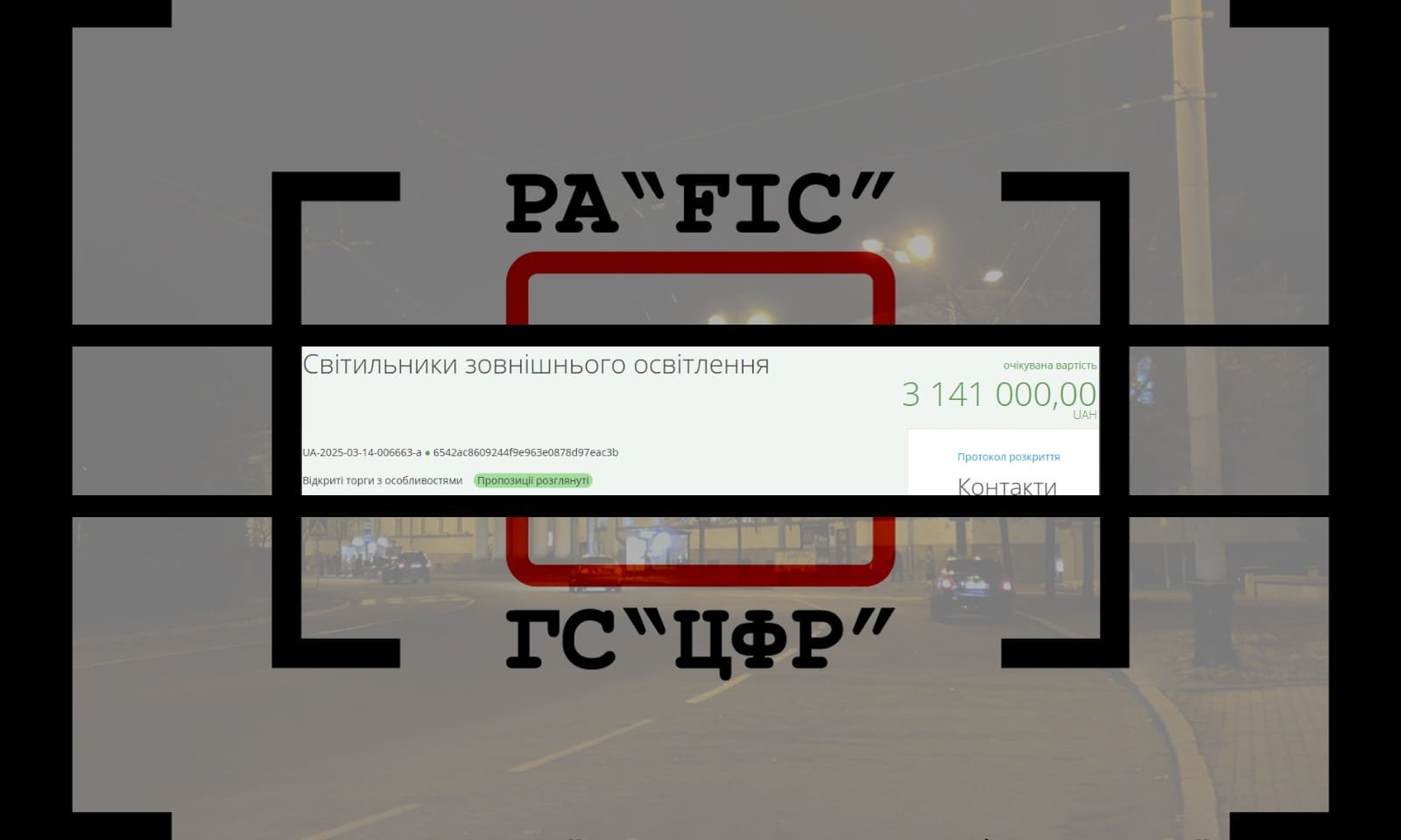 23 березня ПІДПРИЄМСТВО ЕЛЕКТРОМЕРЕЖ ЗОВНІШНЬОГО ОСВІТЛЕННЯ “МІСЬКСВІТЛО” (Полтава) провело закупівлю світильників зовнішнього освітлення. Очікувана вартість закупівлі склала 3 141 000 гривень.