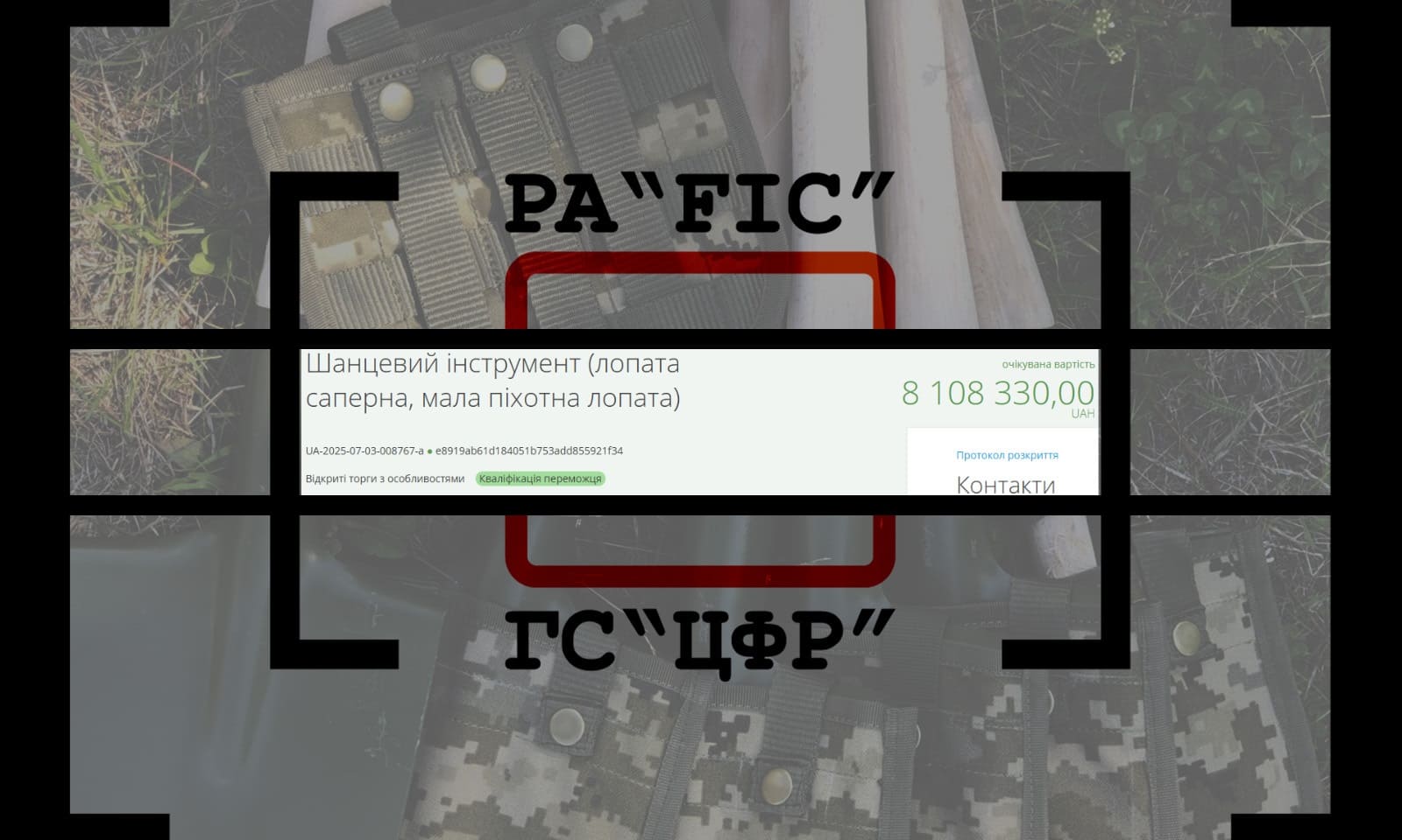 14 липня ГОЛОВНИЙ ЦЕНТР КАПІТАЛЬНОГО БУДІВНИЦТВА, РЕКОНСТРУКЦІЇ ТА ЗАКУПІВЕЛЬ ДЕРЖАВНОЇ ПРИКОРДОННОЇ СЛУЖБИ УКРАЇНИ провів закупівлю за двома лотами на саперні та малі піхотні лопати. Очікувана вартість закупівлі склала 8 108 330 мільйонів гривень.