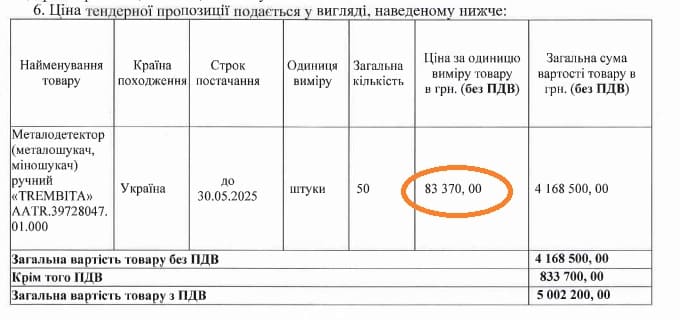 2 квітня ГОЛОВНИЙ ЦЕНТР КАПІТАЛЬНОГО БУДІВНИЦТВА, РЕКОНСТРУКЦІЇ ТА ЗАКУПІВЕЛЬ ДЕРЖАВНОЇ ПРИКОРДОННОЇ СЛУЖБИ УКРАЇНИ провів закупівлю на міношукачі ручні. 50 штук планували придбати за 5 003 430 гривень.