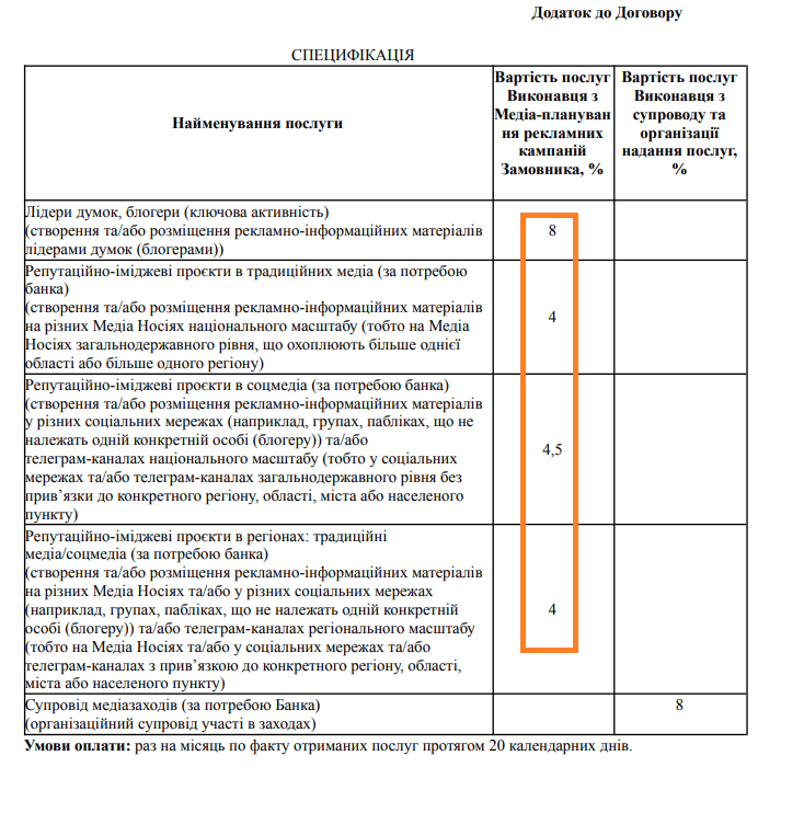 2 липня АКЦІОНЕРНЕ ТОВАРИСТВО КОМЕРЦІЙНИЙ БАНК “ПРИВАТБАНК” провів закупівлю без використання електронної системи на послуги з репутаційного та іміджевого PR, блогерів, вартістю у 4 000 000 гривень.