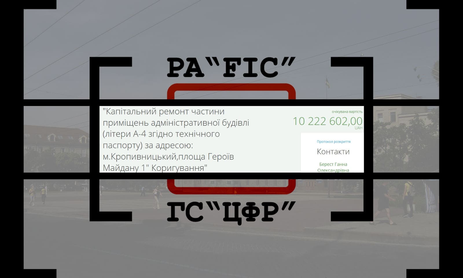23 травня КП по управлінню будинками Кіровоградської обласної ради провів закупівлю на капітальний ремонт частини приміщень адміністративної будівлі (літери А-4 згідно технічного паспорту) за адресою: м. Кропивницький, площа Героїв Майдану 1. Коригування. Очікувана вартість закупівлі склала 10 222 602 гривні.