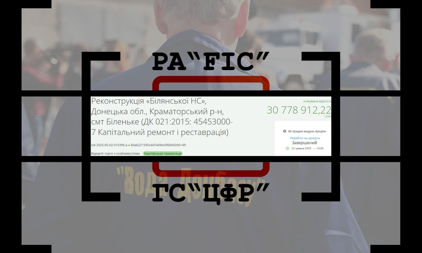 22 травня КОМУНАЛЬНЕ ПІДПРИЄМСТВО “КОМПАНІЯ “ВОДА ДОНБАСУ” провело закупівлю на реконструкцію “Білянської НС”, Донецька обл., Краматорський р-н, смт Біленьке.