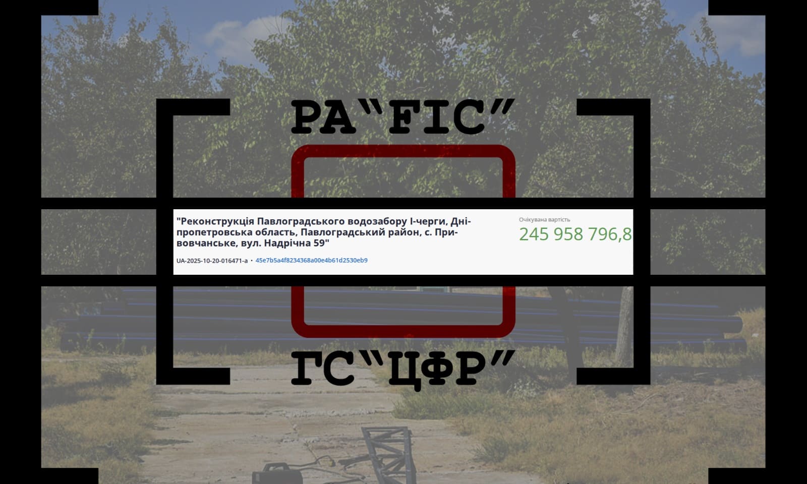 10 листопада Управління комунального господарства та будівництва Павлоградської міської ради провело закупівлю на реконструкцію Павлоградського водозабору І-черги, Дніпропетровська область, Павлоградський район, с. Привовчанське, вул. Надрічна 59.