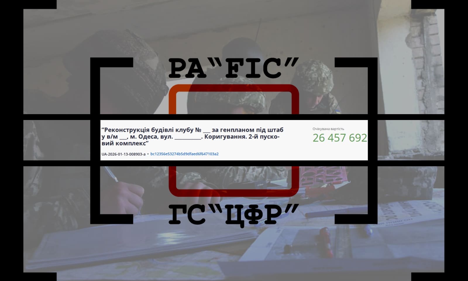 28 січня Військова частина А0456 провела закупівлю на “реконструкцію будівлі клубу № ___ за генпланом під штаб у в/м ___, м. Одеса.