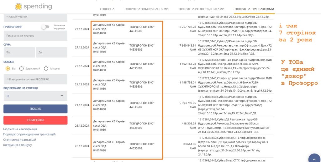 Дивним чином, цю компанію на радарі Prozorro бачить лише вище згаданий департамент. Ну і ми. Там казково виходить: якщо ТОВка йде на торги до департамента, то, частіше всього, у неї виходить, а якщо подається до інших замовників – то не дуже. За два роки між департаментом та ТОВом “ДРОГОН ЕКО” відбувся 21 тендер на понад 213 мільйонів гривень. ТОВка існує з 2021 року.