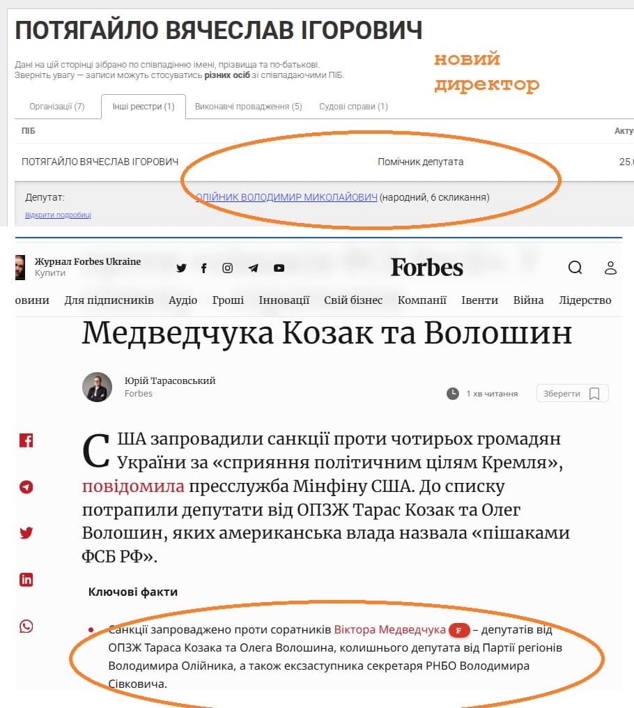 З 20 січня Директором став Вячеслав Потягайло. Пан Потягайло був помічником депутата ВР шостого скликання – Володимира Олійника (так, того самого Олійника, що потрапив до санаційного списку США в компанії з Сівковичем).