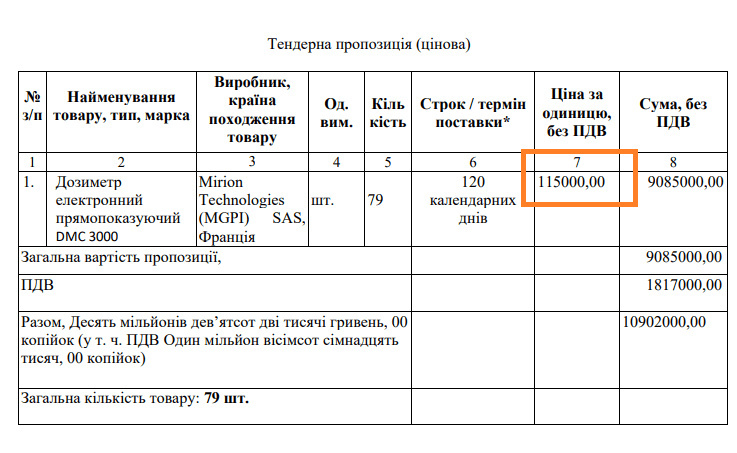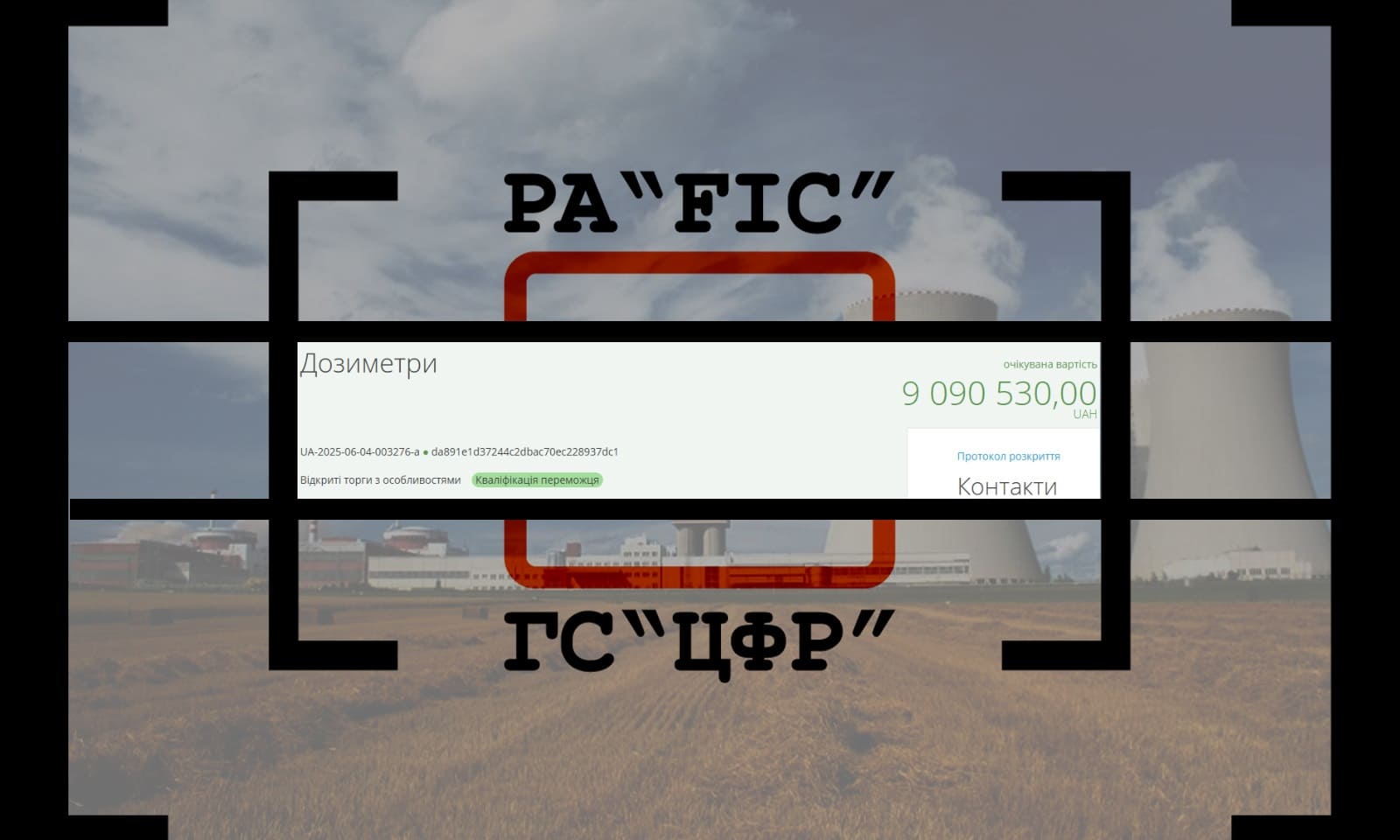12 червня Філія “ВП “Рівненська АЕС” АТ “НАЕК “Енергоатом” провела закупівлю на дозиметри за 9 090 530 гривень.