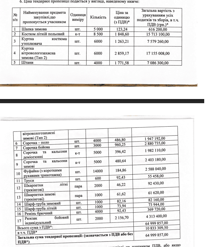 9 травня Служба безпеки України провела закупівлю на військову уніформу за 65 070 830 гривень.