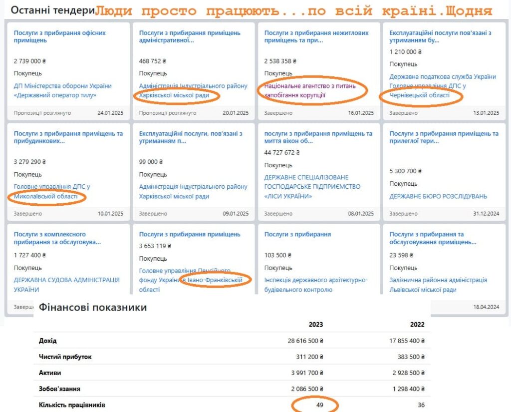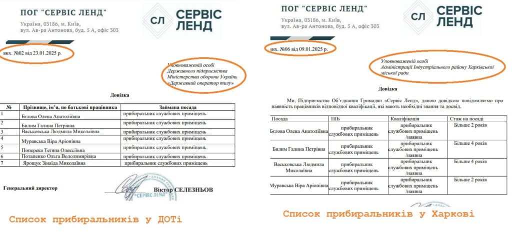 Але повернимось до переможця ПОГ “СЕРВІС ЛЕНД”. В різних відкритих базах вказано, що в організації є 49 співробітників. Наприклад, на торги ДОТу подають документ, що мають 7 прибиральників.