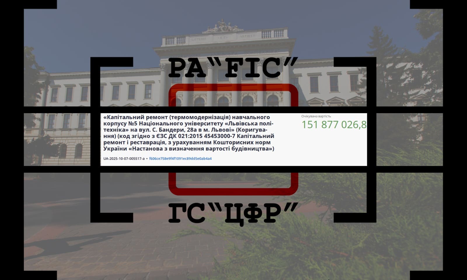 12 листопада Національний університет “Львівська політехніка” провів закупівлю на капітальний ремонт (термомодернізація) навчального корпусу №5.