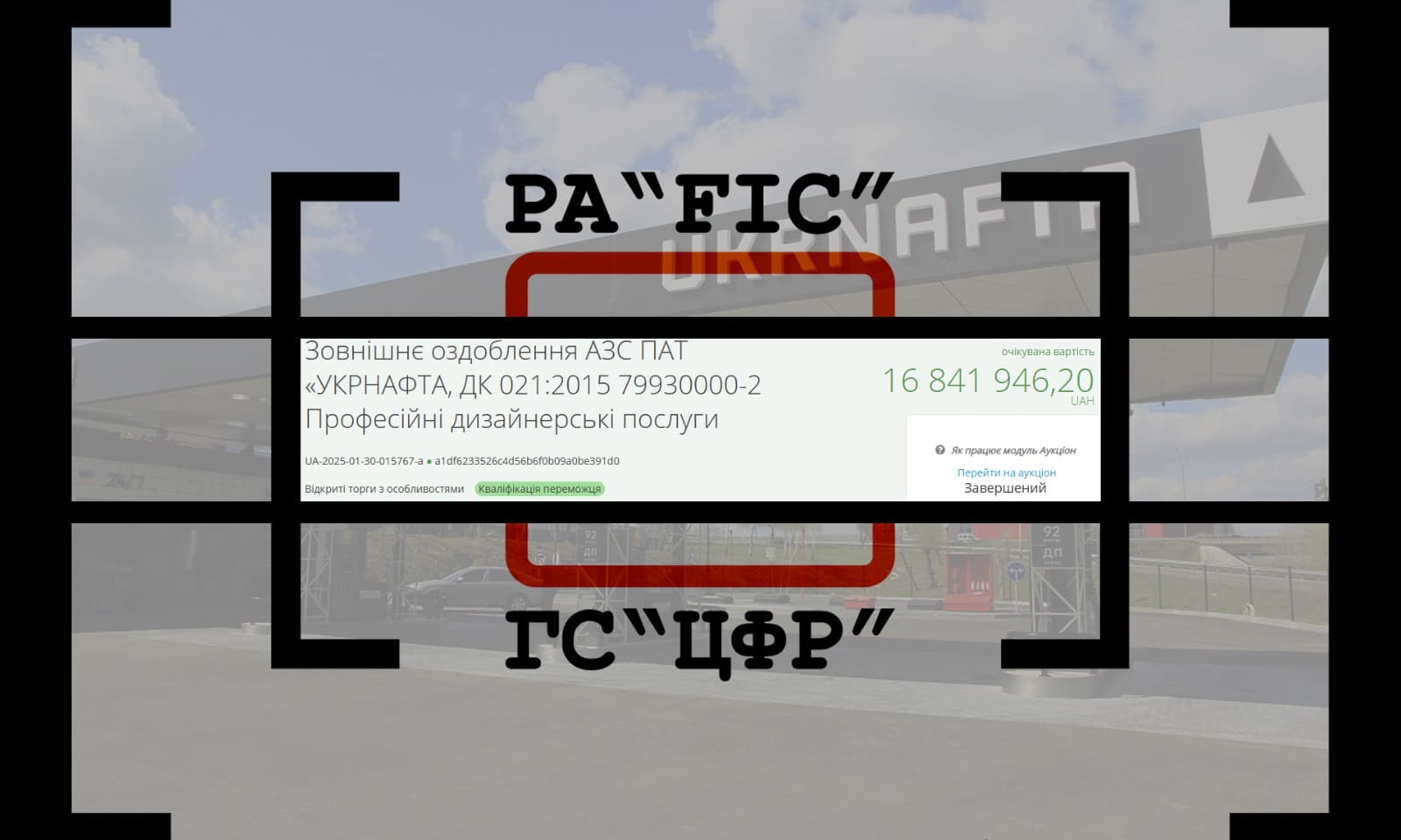 17 лютого ПУБЛІЧНЕ АКЦІОНЕРНЕ ТОВАРИСТВО “УКPНAФТА” провело чергову закупівлю на зовнішнє оздоблення АЗС ПАТ “УКРНАФТА” (дизайнерські послуги). Очікувана вартість закупівлі склала 16 841 946,2 гривні.