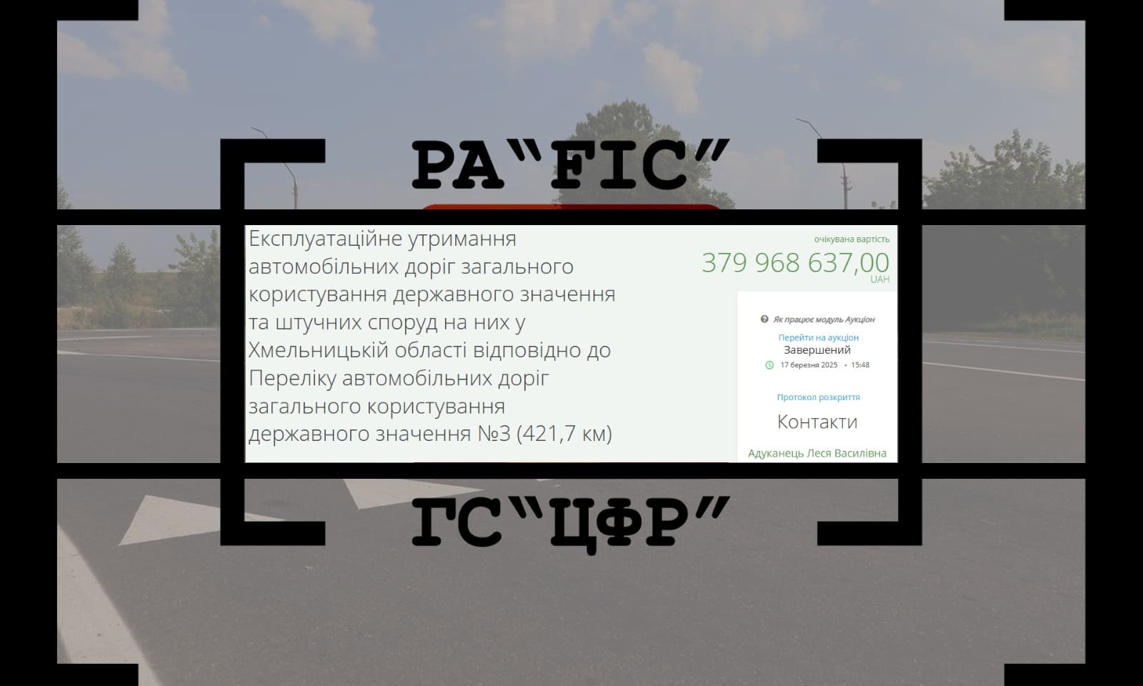 17 березня СЛУЖБА ВІДНОВЛЕННЯ ТА РОЗВИТКУ ІНФРАСТРУКТУРИ У ХМЕЛЬНИЦЬКІЙ ОБЛАСТІ провела закупівлю на експлуатаційне утримання автомобільних доріг загального користування державного значення та штучних споруд на них у Хмельницькій області відповідно до Переліку автомобільних доріг загального користування державного значення №3 (421,7 км).