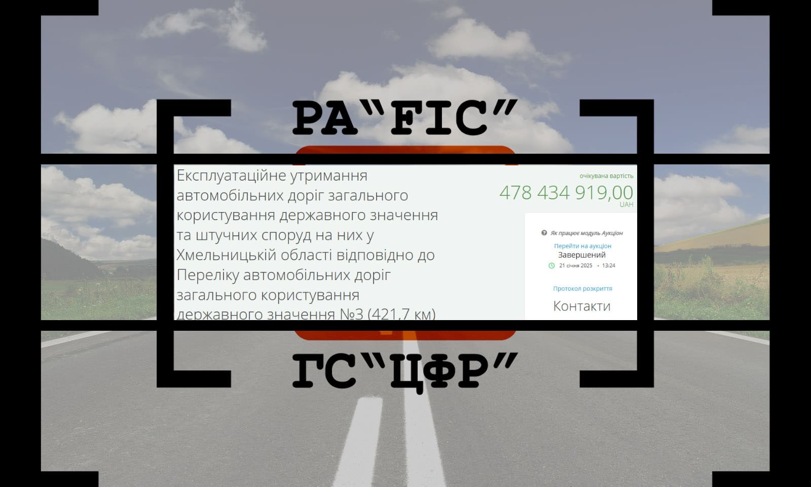 На торгах змагались два учасники, переміг КОНСОРЦІУМ “ГЛОБАЛ РОАДС ГРУП” з пропозицією у 286 000 000 гривень.