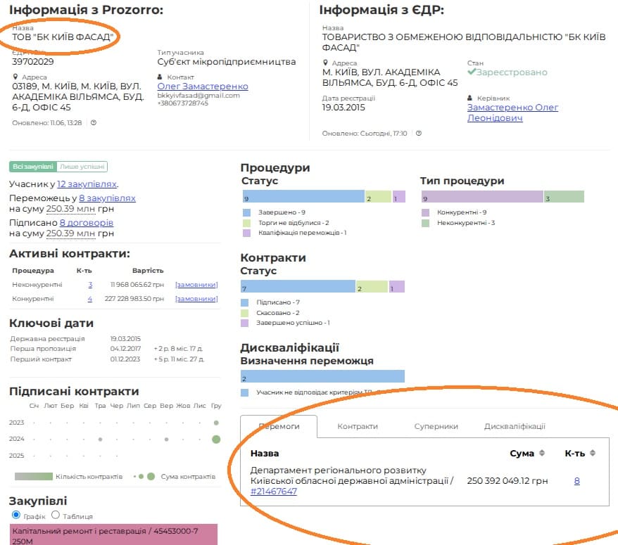 ТОВ існує з 2015 року. Має 8 договорів на 250 мільйонів. Всі договори підписані саме з вище згаданим замовником.