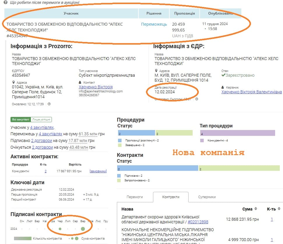І ще нюанс. Якщо про ТОВ “ПРОТЕК СОЛЮШНЗ УКРАЇНА” ми неодноразово чули… то хто такі ТОВ “АПЕКС ХЕЛС ТЕХНОЛОДЖИ”, котрі продають ці двадцятимільйонники???