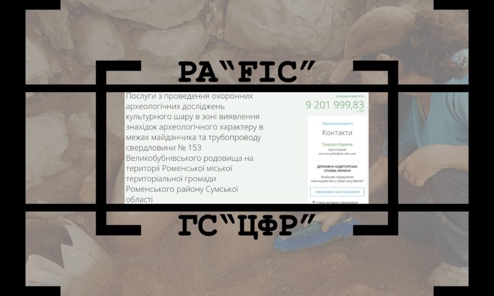 24 березня ПУБЛІЧНЕ АКЦІОНЕРНЕ ТОВАРИСТВО “УКPНAФТА” провело закупівлю на послуги з проведення охоронних археологічних досліджень культурного шару в зоні виявлення знахідок археологічного характеру в межах майданчика...