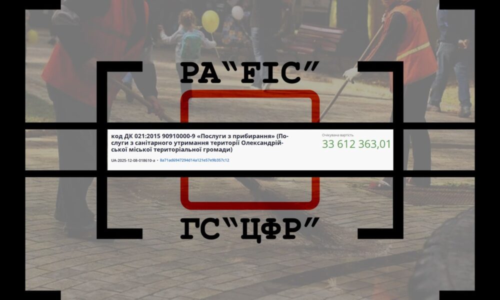 16 грудня УПРАВЛІННЯ ЖИТЛОВО-КОМУНАЛЬНОГО ГОСПОДАРСТВА, АРХІТЕКТУРИ ТА МІСТОБУДУВАННЯ ОЛЕКСАНДРІЙСЬКОЇ МІСЬКОЇ РАДИ провело закупівлю на послуги з санітарного утримання території Олександрійської...