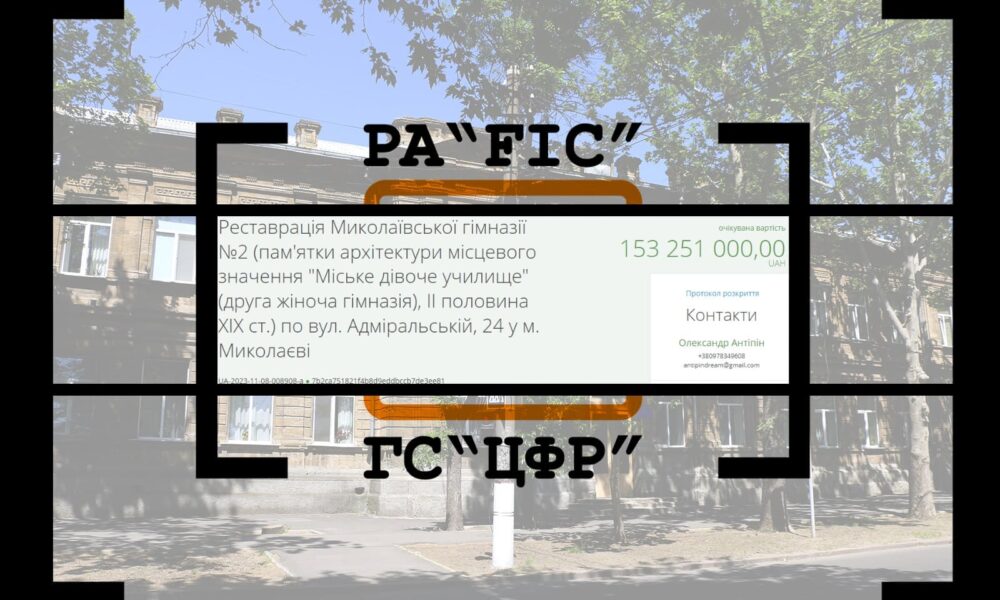 ДЕПАРТАМЕНТ МІСТОБУДУВАННЯ, АРХІТЕКТУРИ, КАПІТАЛЬНОГО БУДІВНИЦТВА ТА СУПРОВОДЖЕННЯ ПРОЄКТІВ РОЗВИТКУ МИКОЛАЇВСЬКОЇ ОБЛАСНОЇ ДЕРЖАВНОЇ АДМІНІСТРАЦІЇ ще 18 листопада провів відкриті торги на “реставрацію Миколаївської гімназії №2 (пам’ятки архітектури...