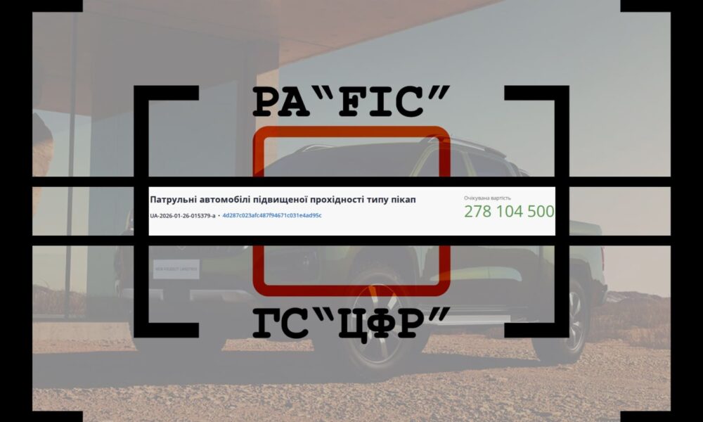 9 лютого ГОЛОВНИЙ ЦЕНТР КАПІТАЛЬНОГО БУДІВНИЦТВА, РЕКОНСТРУКЦІЇ ТА ЗАКУПІВЕЛЬ ДЕРЖАВНОЇ ПРИКОРДОННОЇ СЛУЖБИ УКРАЇНИ провів закупівлю на патрульні автомобілі підвищеної прохідності типу пікап. Очікувана вартість 150 одиниць...