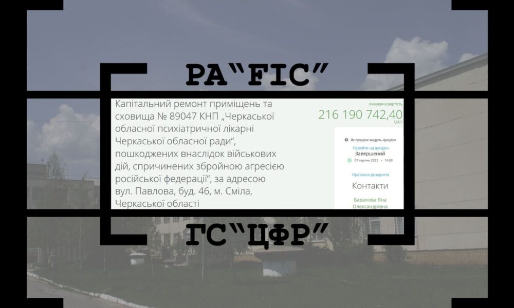 7 серпня Департамент будівництва Черкаської обласної державної адміністрації провів закупівлю на капітальний ремонт приміщень та сховища № 89047 КНП „Черкаської обласної психіатричної лікарні Черкаської обласної ради“,...