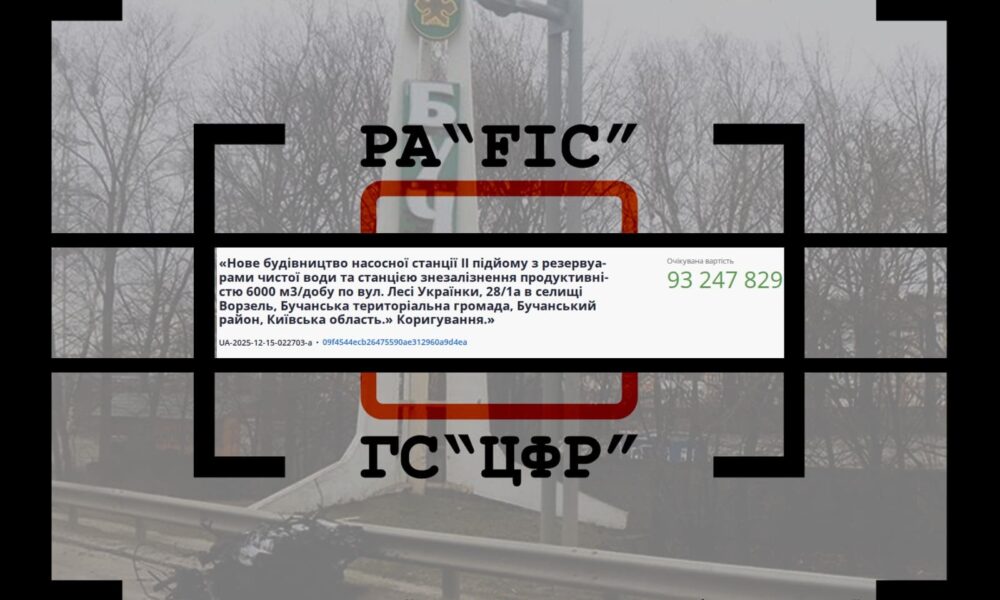 15 січня КОМУНАЛЬНЕ ПІДПРИЄМСТВО “БУЧАСЕРВІС” БУЧАНСЬКОЇ МІСЬКОЇ РАДИ провело закупівлю на нове будівництво насосної станції ІІ підйому з резервуарами чистої води та станцією знезалізнення продуктивністю 6000...