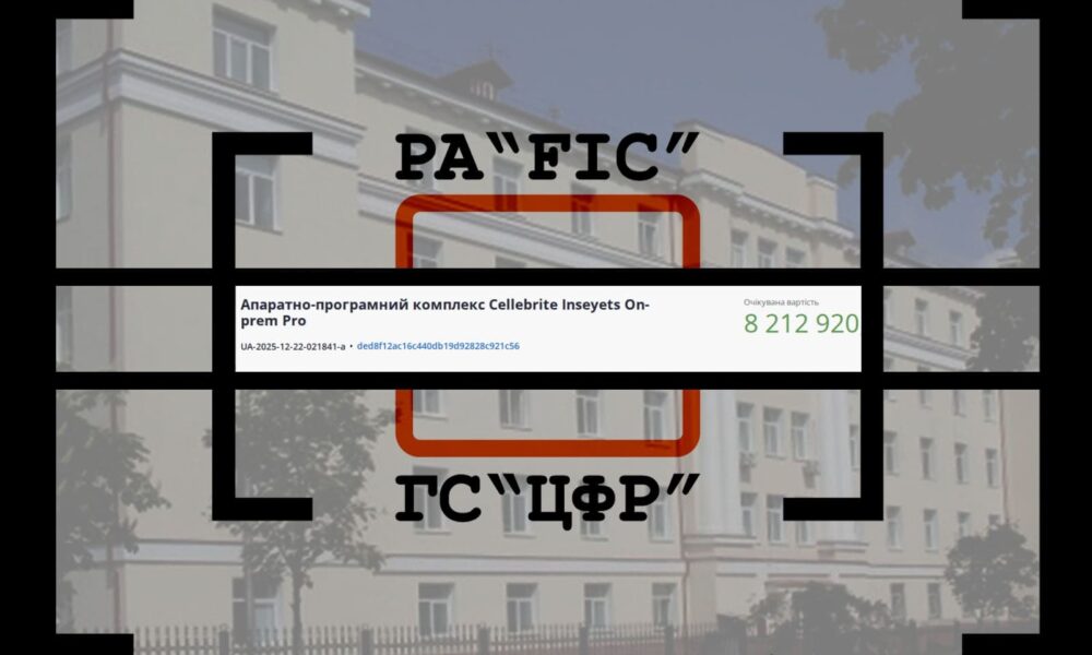 30 грудня КИЇВСЬКИЙ НАУКОВО-ДОСЛІДНИЙ ІНСТИТУТ СУДОВИХ ЕКСПЕРТИЗ МІНІСТЕРСТВА ЮСТИЦІЇ УКРАЇНИ провів закупівлю на апаратно-програмний комплекс Cellebrite Inseyets On-prem Pro. Очікувана вартість закупівлі склала 8 212 920...