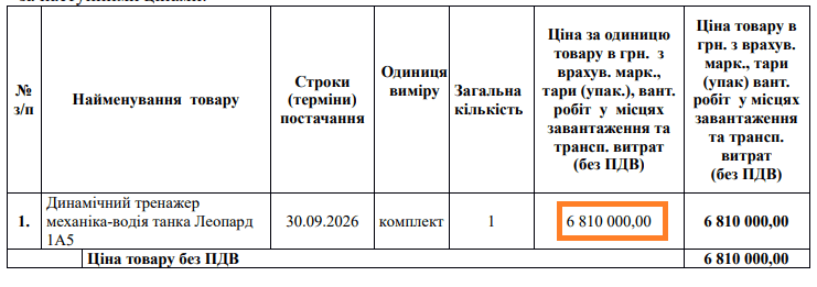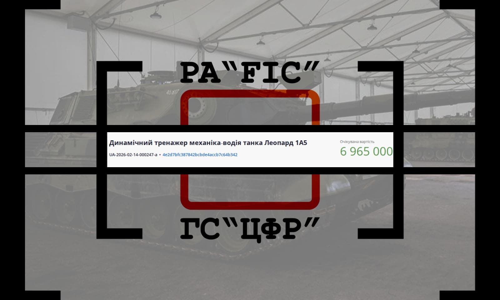 26 лютого Військова частина А 1414 провела закупівлю на динамічний тренажер механіка‑водія танка Леопард 1A5.