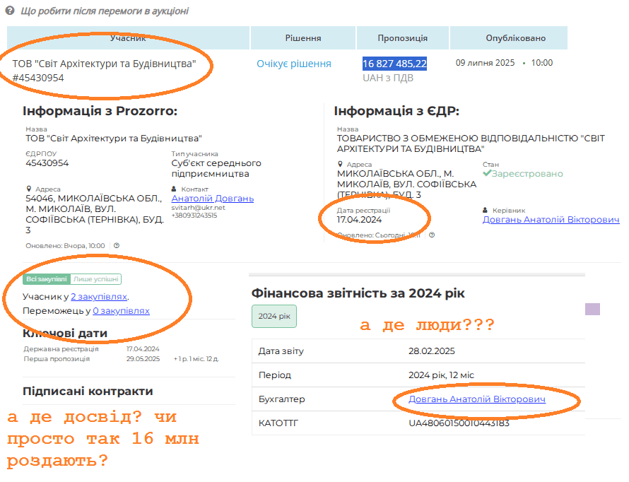 ТОВка відносно свіжа, їй рік. Але досі має нуль контрактів у Prozorro.