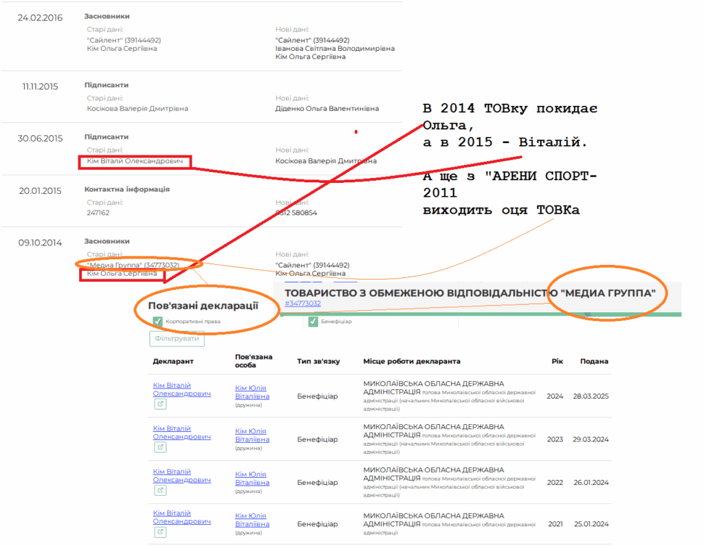 А у 2014 році з цього ТОВу вийшла ТОВ “МЕДИА ГРУП”, власницею якої і досі є Юлія Кім, дружина очільника Миколаївської ОДА.