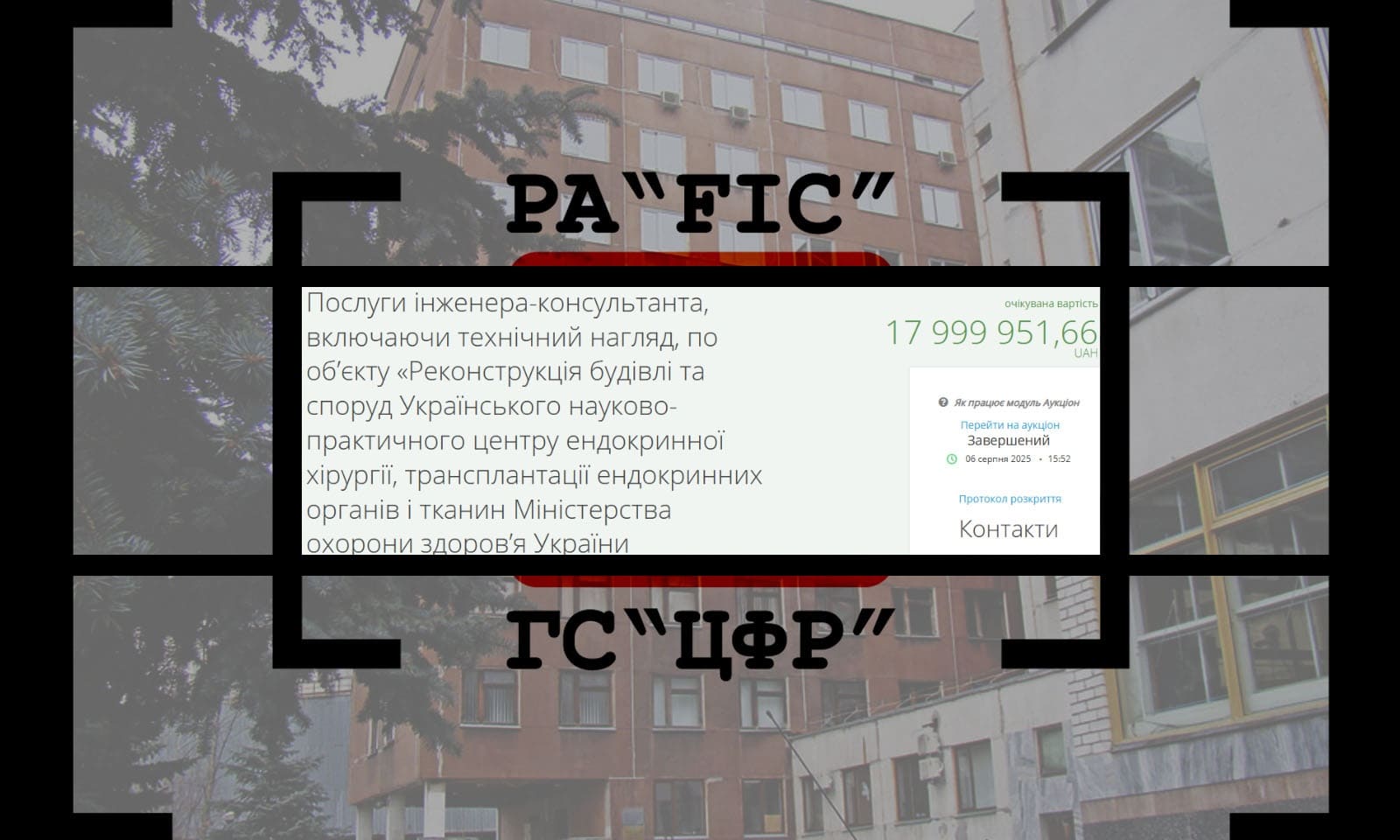 6 серпня Державне некомерційне підприємство “Український науково-практичний центр ендокринної хірургії, трансплантації ендокринних органів і тканин Міністерства охорони здоров’я України” провело закупівлю на послуги інженера-консультанта, включаючи технічний нагляд на території закладу.