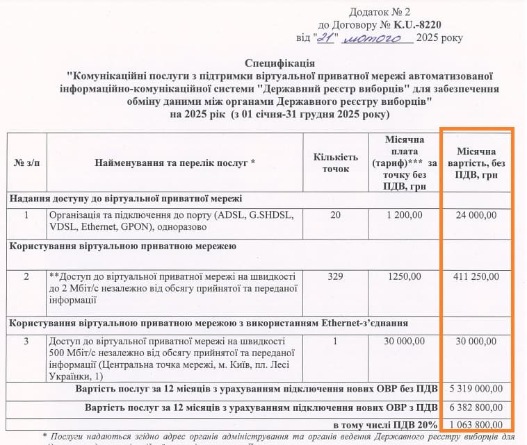 21 лютого ЦЕНТРАЛЬНА ВИБОРЧА КОМІСІЯ провела закупівлю без використання електронної системи на комунікаційні послуги з підтримки віртуальної приватної мережі автоматизованої інформаційно-комунікаційної системи “Державний реєстр виборців” для забезпечення обміну даними між органами Державного реєстру виборців.