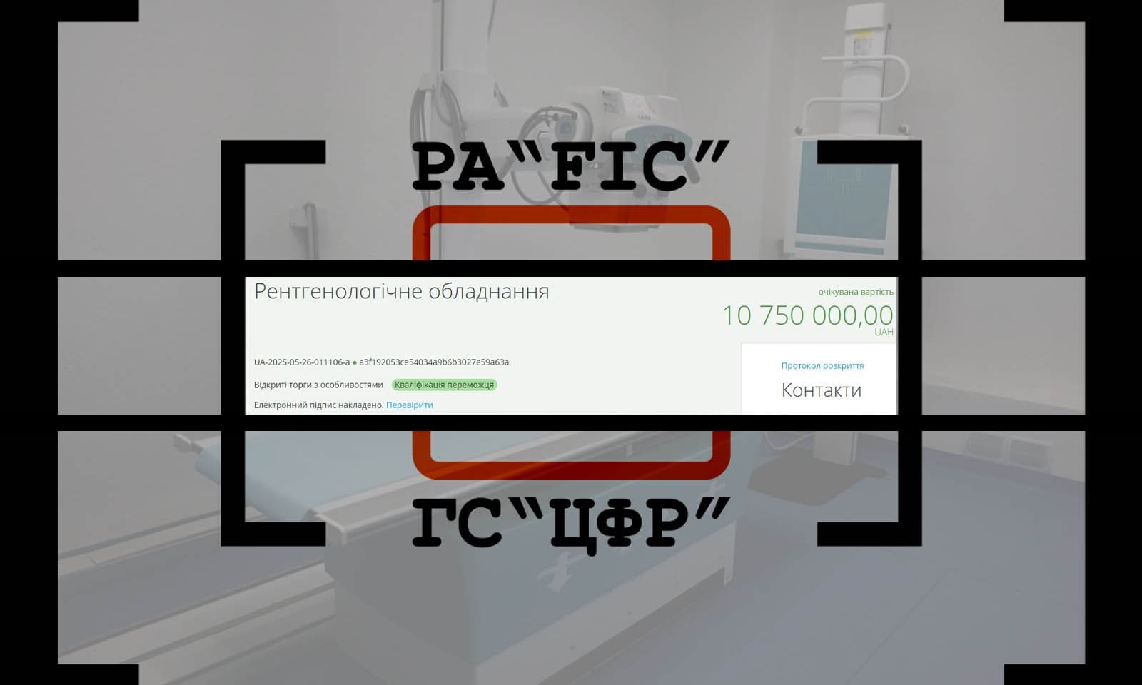 3 червня Державне некомерційне підприємство “Всеукраїнський лікувально-реабілітаційний центр “Циблі”” провів закупівлю на рентгенологічне обладнання.