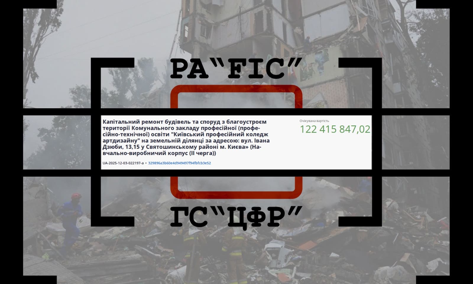 18 грудня Комунальний заклад професійної (професійно-технічної) освіти “Київський професійний коледж артдизайну” провів закупівлю на капітальний ремонт будівель та споруд з благоустроєм території.