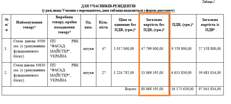 8 червня ПУБЛІЧНЕ АКЦІОНЕРНЕ ТОВАРИСТВО “УКРНАФТА” провела закупівлю на цінові пілони (стели) для потреб мережі АЗС ПАТ “УКРНАФТА” (з монтажем), очікуваною вартістю 80 868 195 гривень.