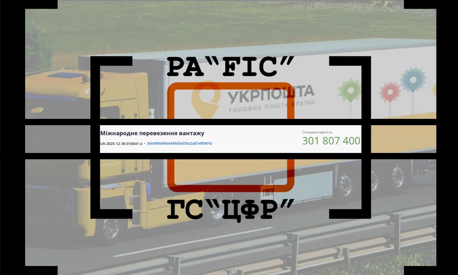 7 січня АКЦІОНЕРНЕ ТОВАРИСТВО “УКРПОШТА” провело закупівлю на міжнародне перевезення вантажу, очікуваною вартістю 301 807 400 гривень.