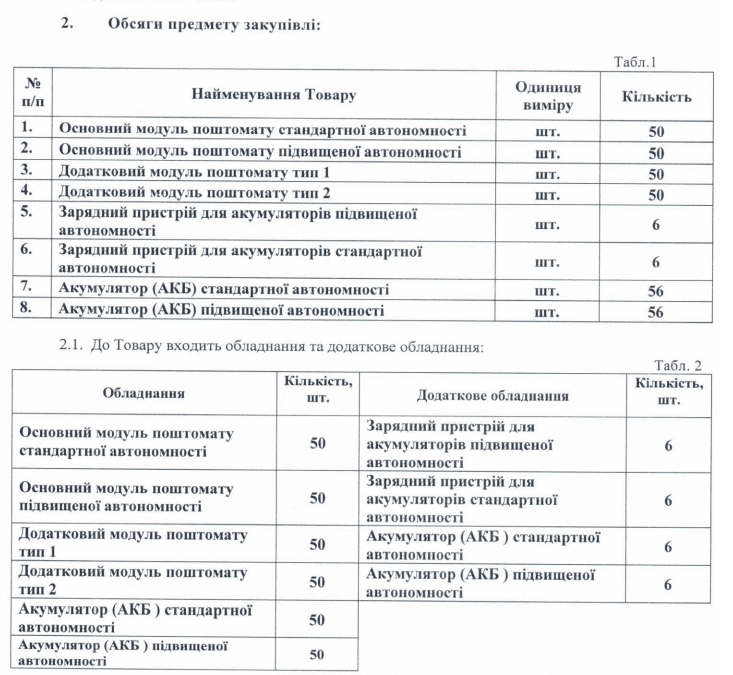 24 вересня АКЦІОНЕРНЕ ТОВАРИСТВО “УКРПОШТА” провело закупівлю на поштові термінали самообслуговування (поштомат) з установкою. Очікувана вартість 324 одиниць склала 20 794 119,84 гривні.