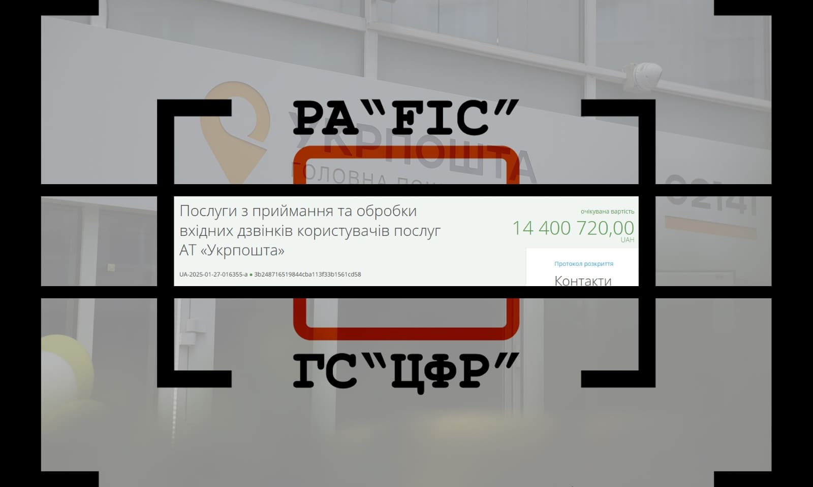 4 лютого АКЦІОНЕРНЕ ТОВАРИСТВО “УКРПОШТА” провело закупівлю на послуги з приймання та обробки вхідних дзвінків користувачів послуг АТ “Укрпошта”. Очікувана вартість закупівлі склала 14 400 720 гривень.