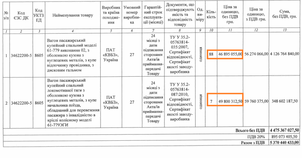 28 квітня АКЦІОНЕРНЕ ТОВАРИСТВО “УКРАЇНСЬКА ЗАЛІЗНИЦЯ” провела закупівлю на вагони пасажирські купейні спальні (КУП), вагони пасажирські купейні спальні обладнані для перевезення осіб у кріслі колісному та купе начальника поїзда (КУПІ).